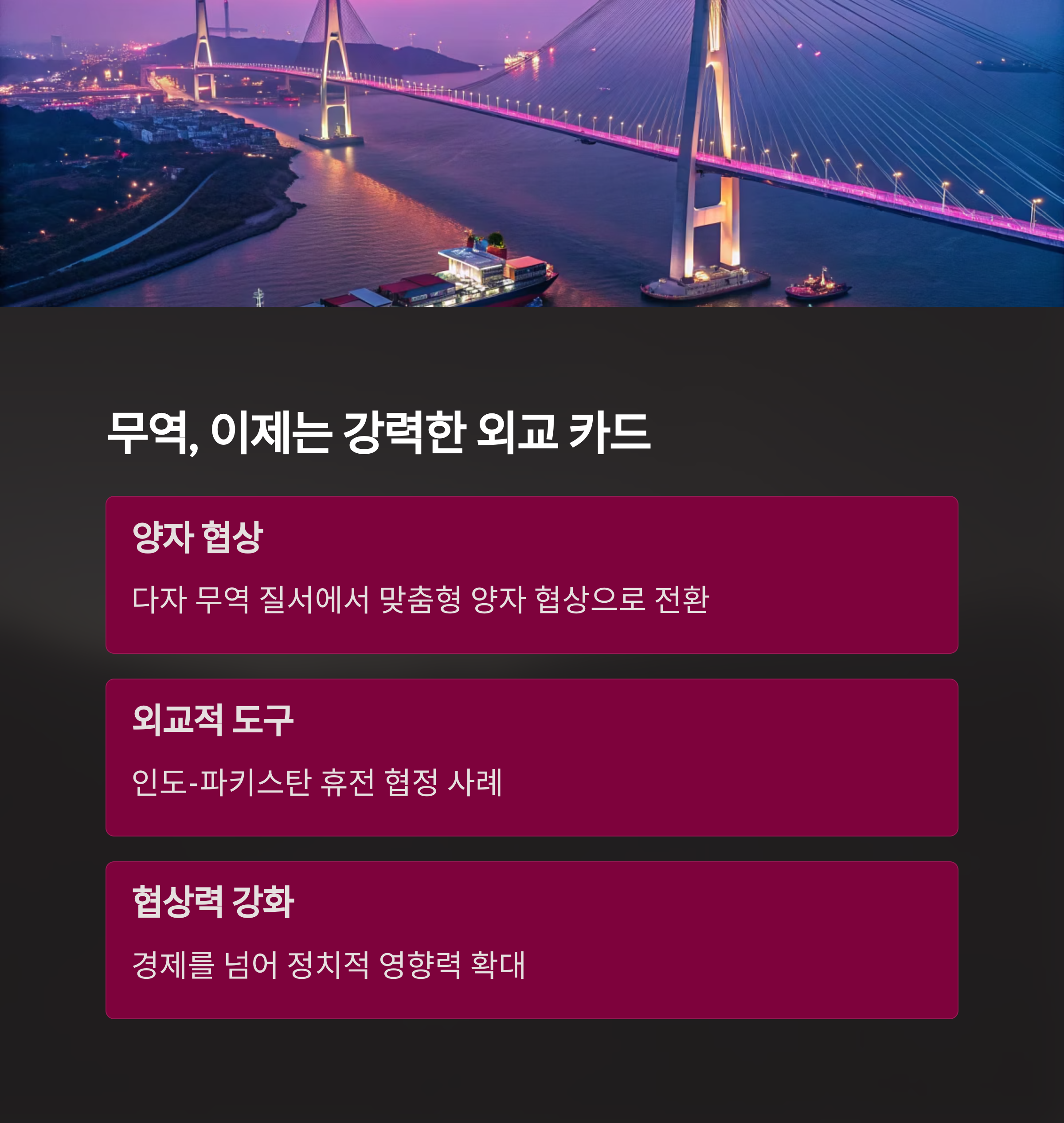 흥미로운 건, 트럼프가 무역을 단지 경제 문제가 아니라 외교적 수단으로도 활용한다는 점입니다.