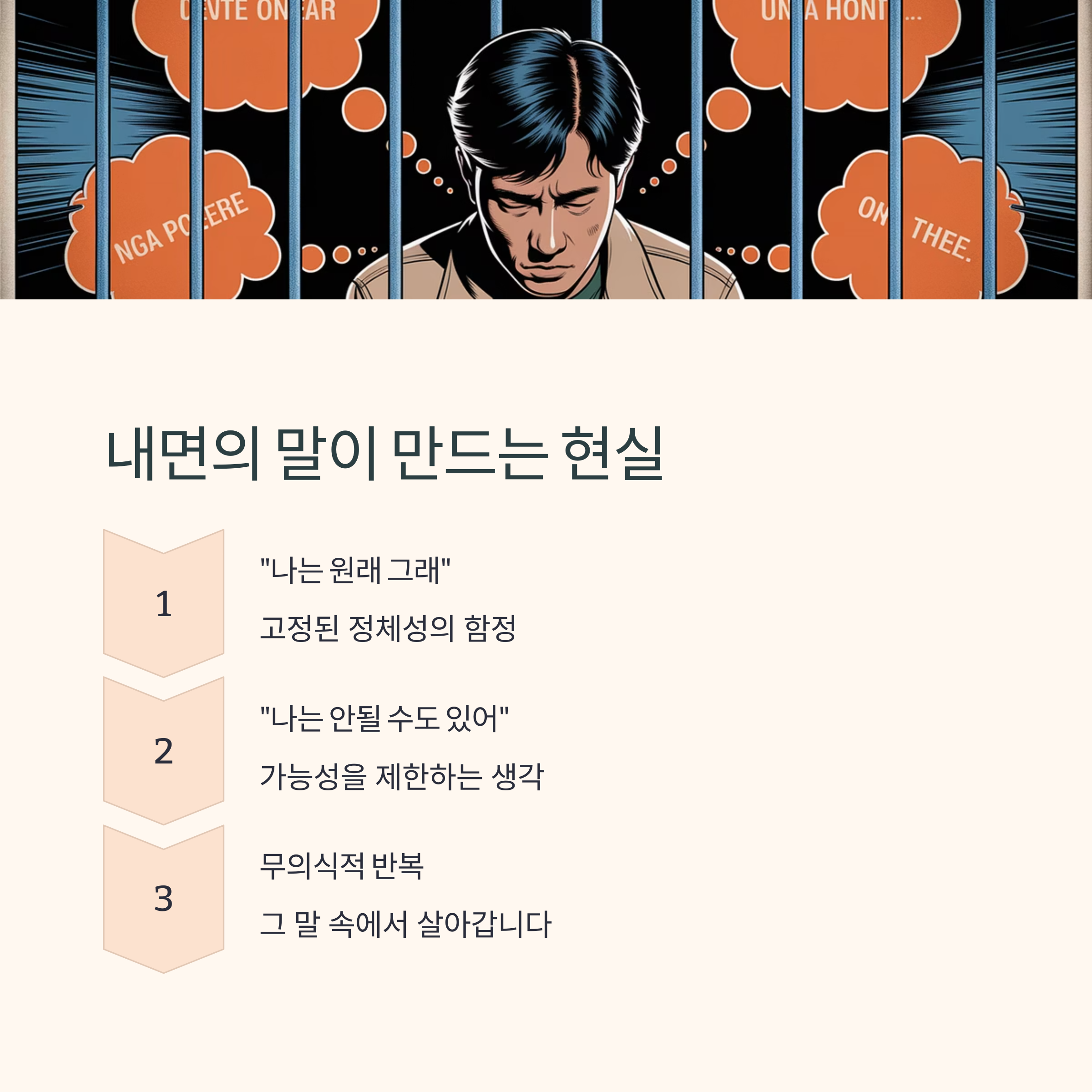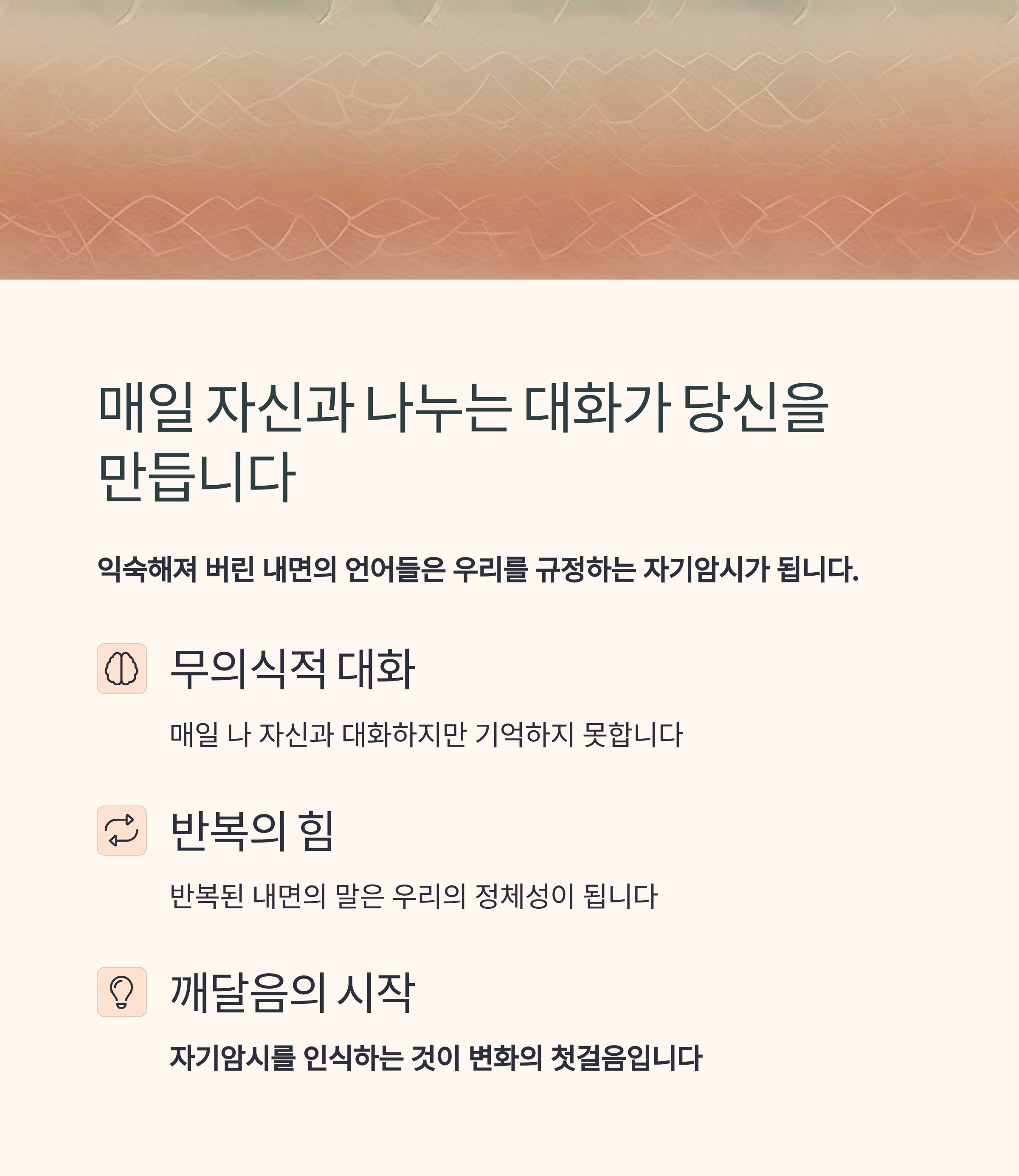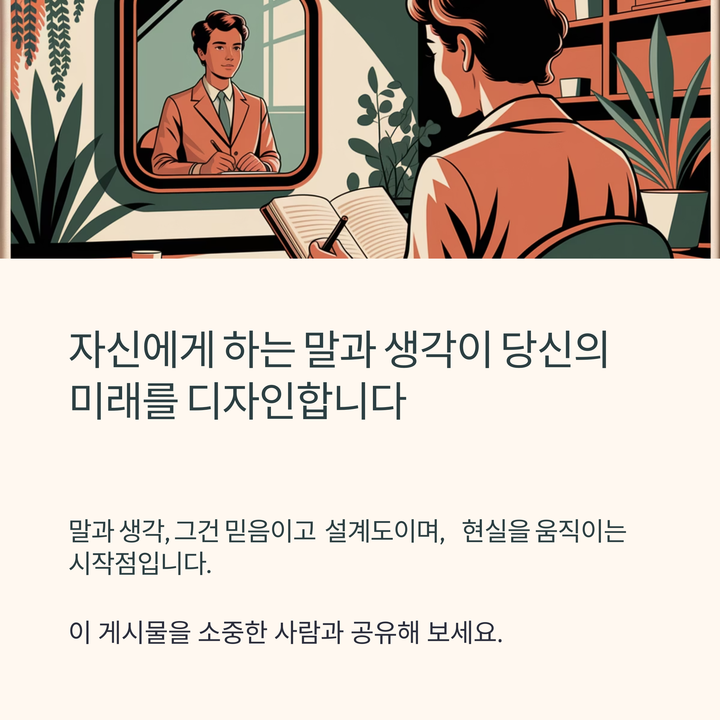 내가 나 자신에게 어떤 말을 반복하느냐가 결국 내 감정, 행동, 심지어 건강까지도 좌우해.