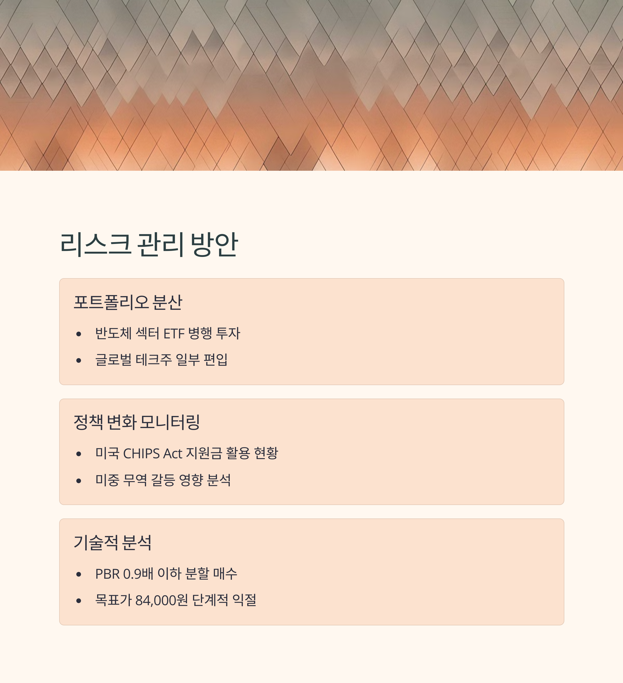 - 부정적 요인: 반도체 부문 적자 지속, 미국 반도체 관세 이슈, 외국인 순매도