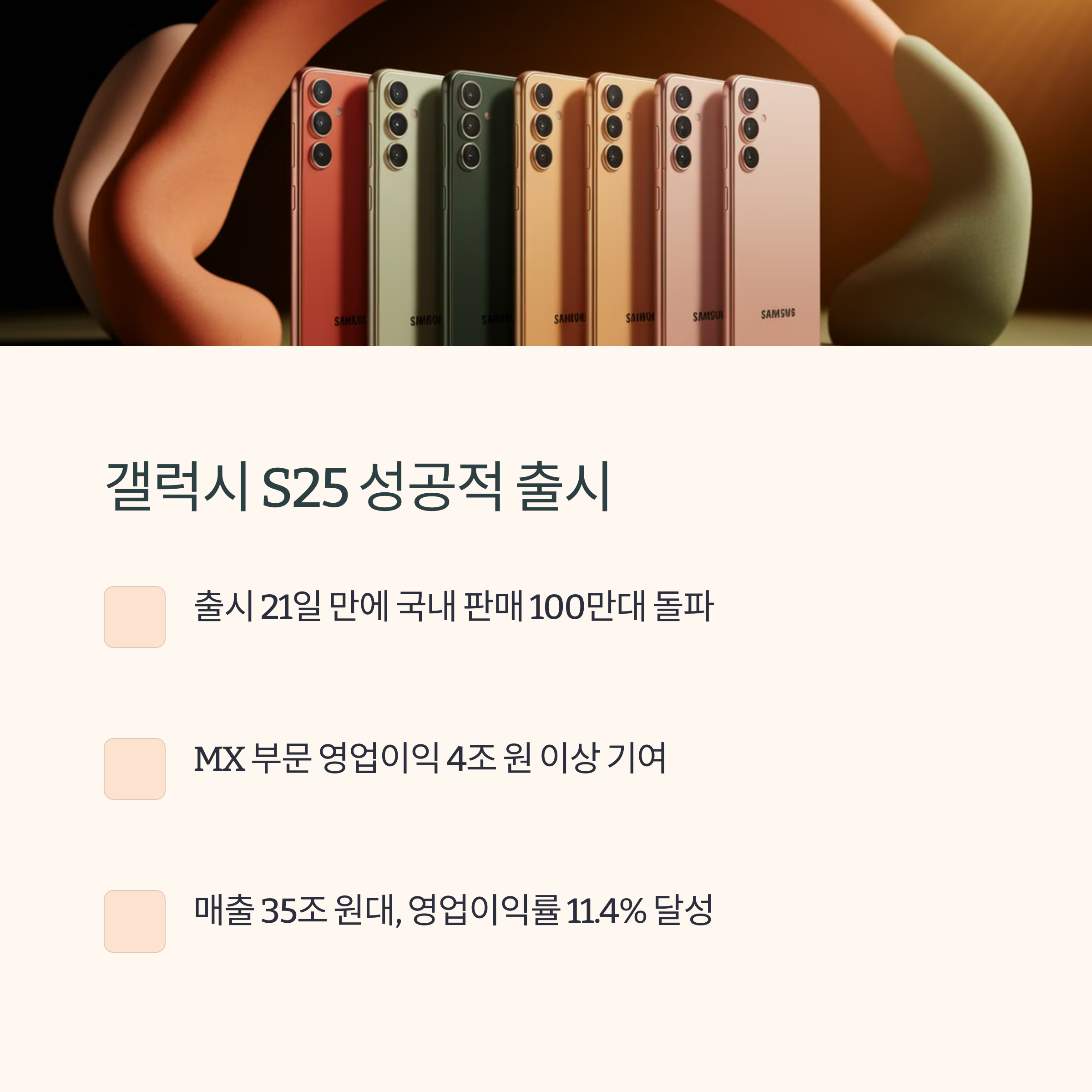 - 갤럭시 S25 시리즈 출시 3주 만에 국내 100만 대 돌파.