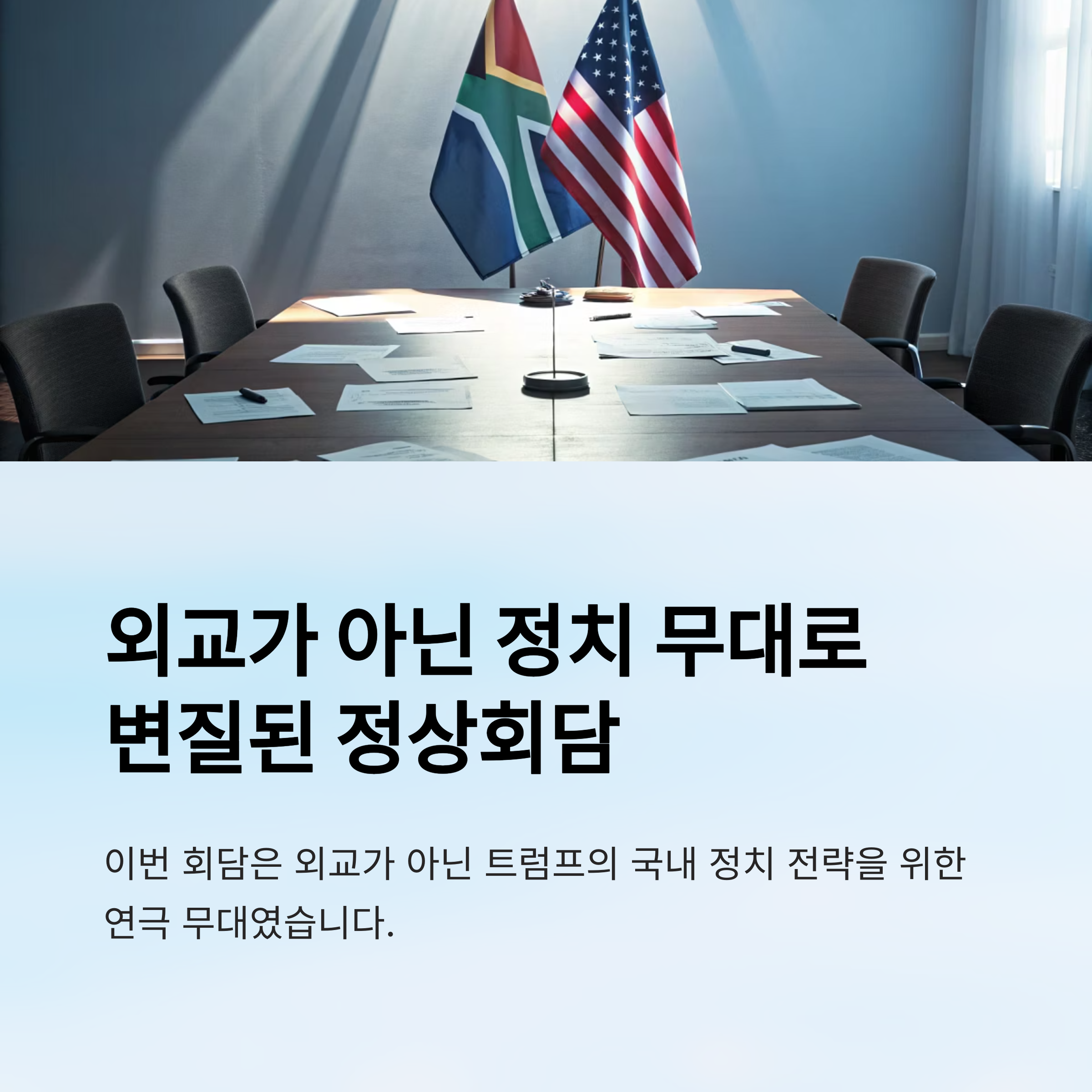 겉으로 보기엔 외교적 해프닝처럼 보일 수도 있습니다. 하지만 이 회담은 철저히 기획된 퍼포먼스였습니다. 트럼프는 왜 라마포사를 상대로 이런 극적인 장면을 연출했을까요? 여기에는 몇 가지 정치적 계산이 숨어 있습니다.