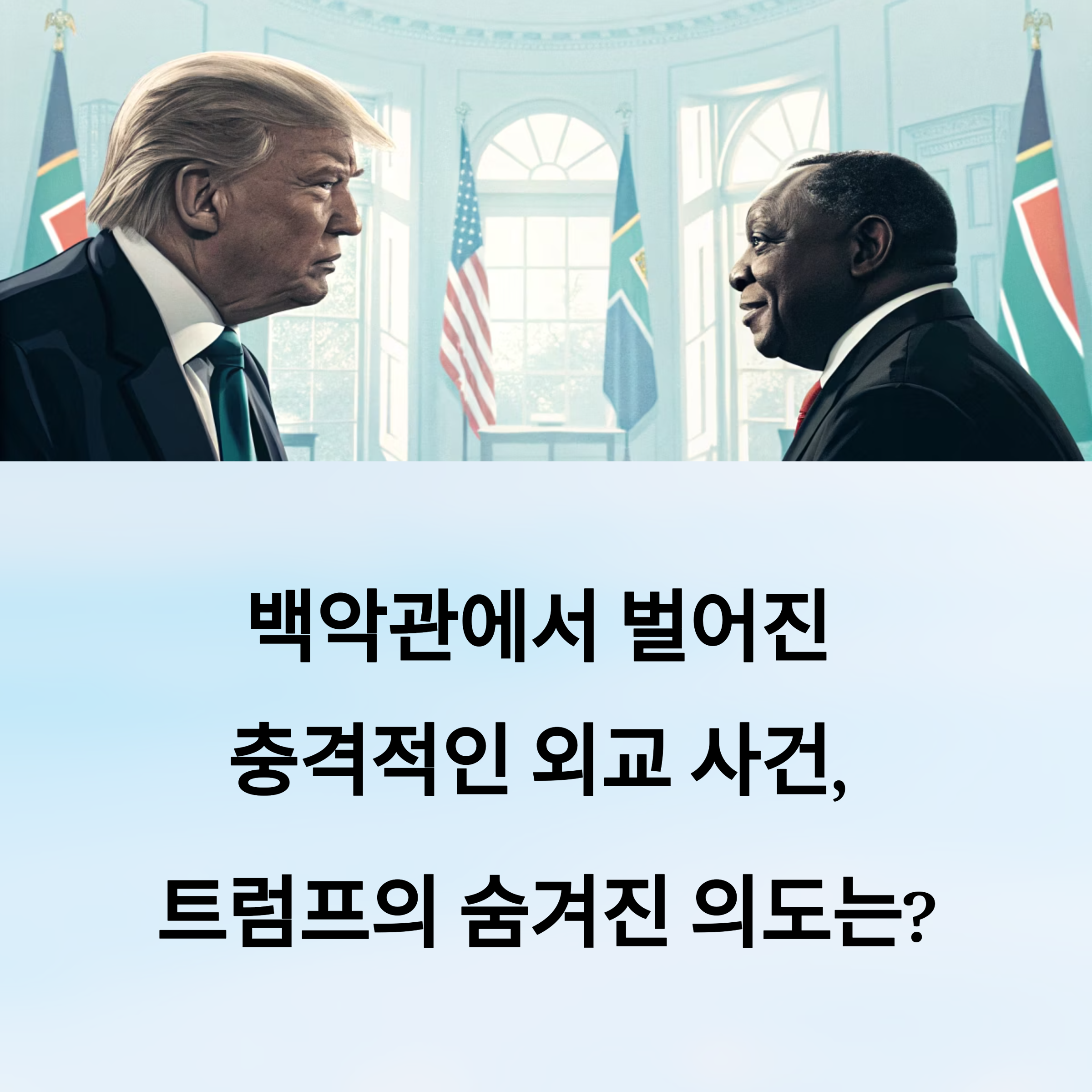결국 이번 백악관 회담은 외교가 아니었습니다. 트럼프는 라마포사를 설득하려는 의도보다, 회담 자체를 하나의 연극처럼 구성해 국내 정치에 활용하고자 했습니다. 그의 행동은 명확합니다. 자신이 믿는 세계관을 사람들에게 납득시키고, 반대편을 적으로 만들며, 지지층을 더 단단하게 묶기 위한 전략이었습니다.