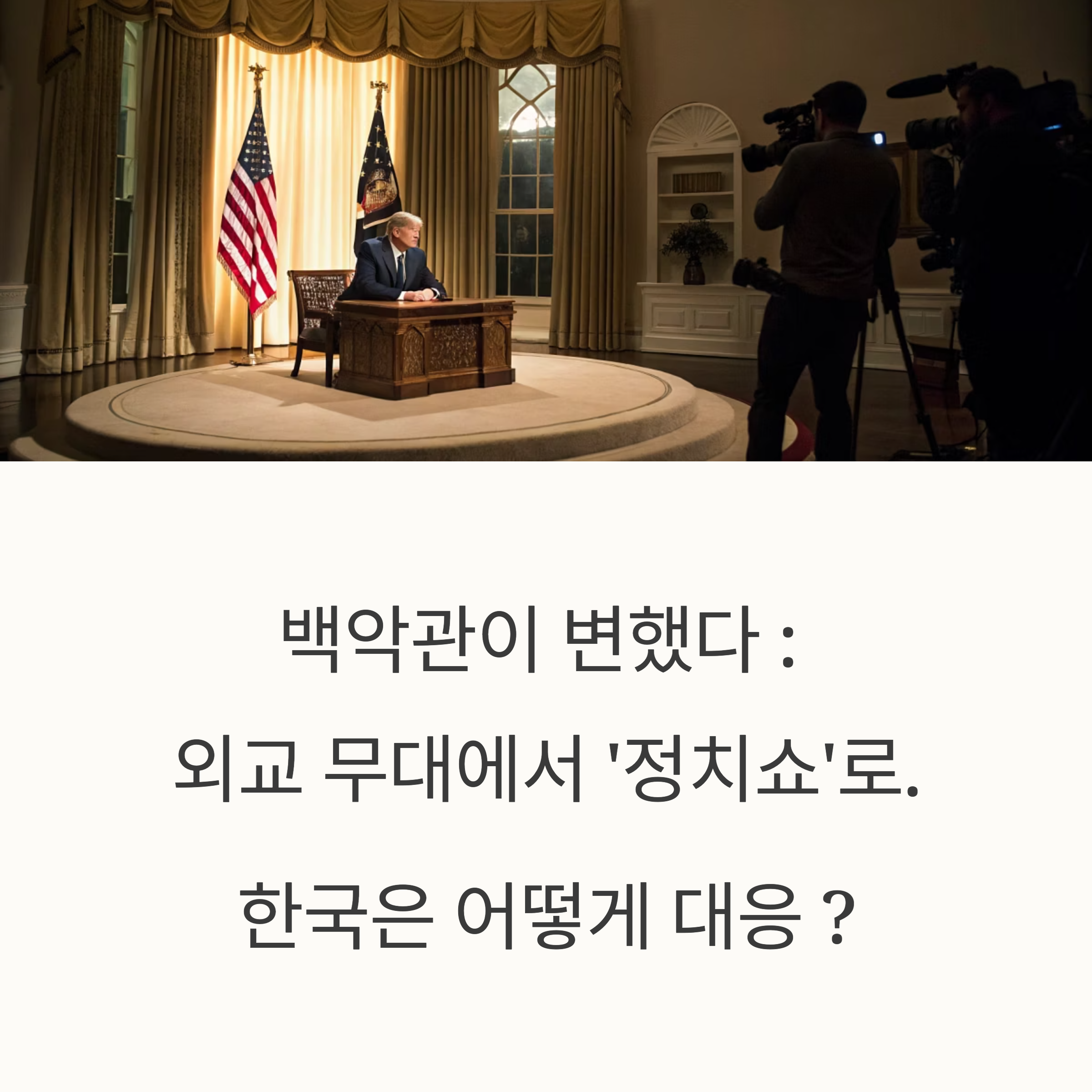 → 이때 한국 대통령이 신중한 입장을 보이면, 트럼프는 이를 언론 앞에서 약한 리더십으로 몰고 갈 수 있습니다.
