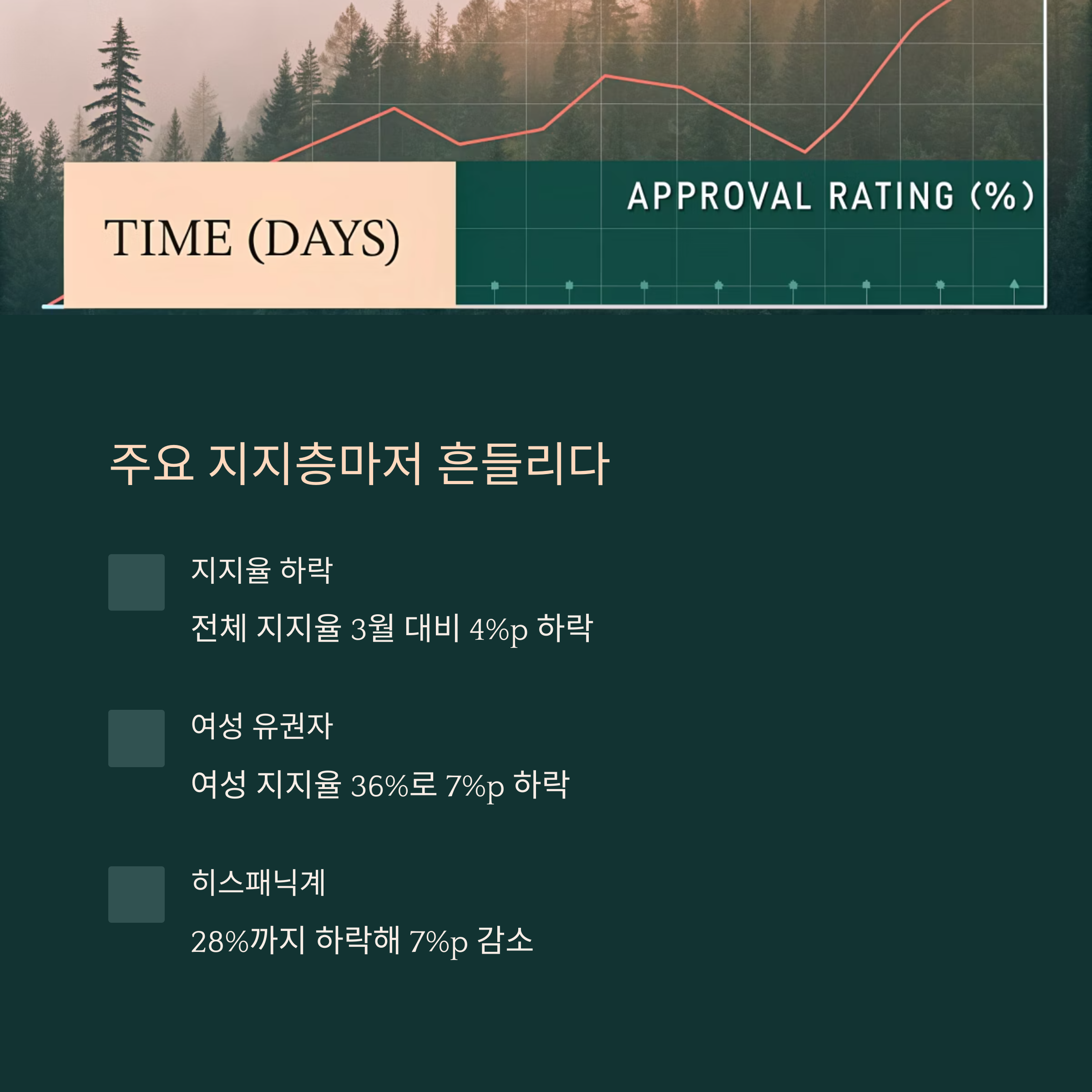 - 이민 정책: 지지율 45% (6p 하락)