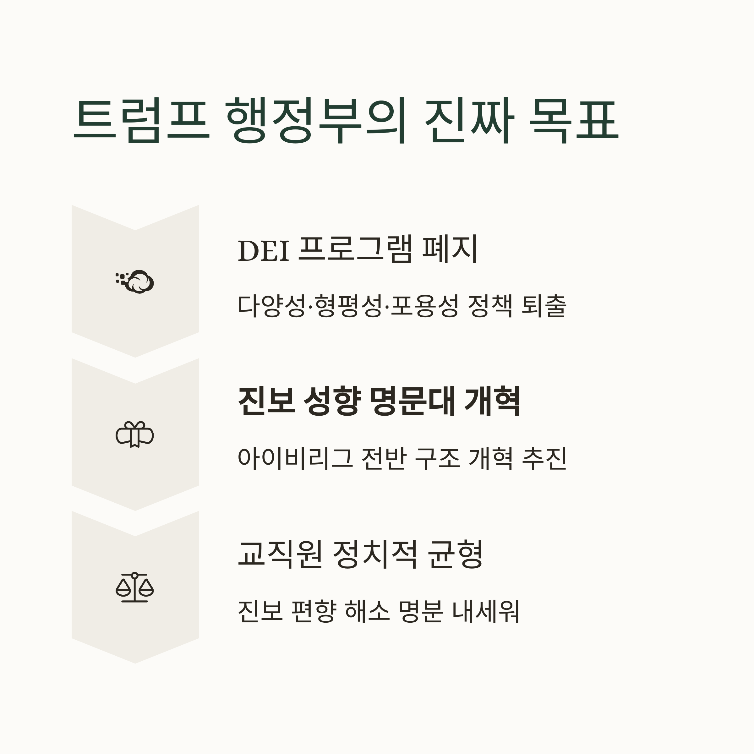 이 모든 요구는 대학을 “정치 운동장이 아닌 학문의 장으로 되돌리자”는 명분을 내세우고 있지만, 실제로는 대학 자율성에 대한 침해라는 논란이 커지고 있습니다.