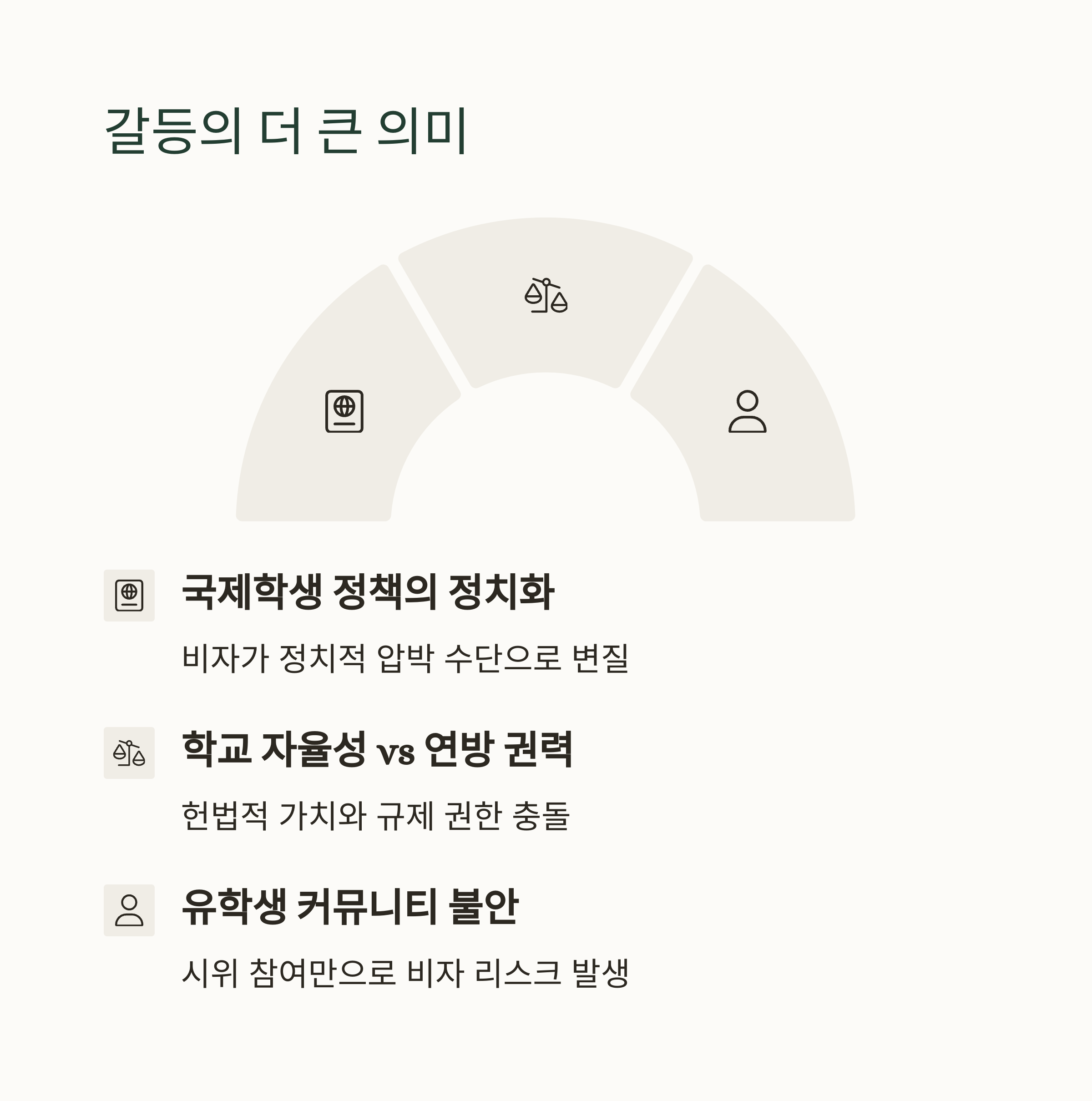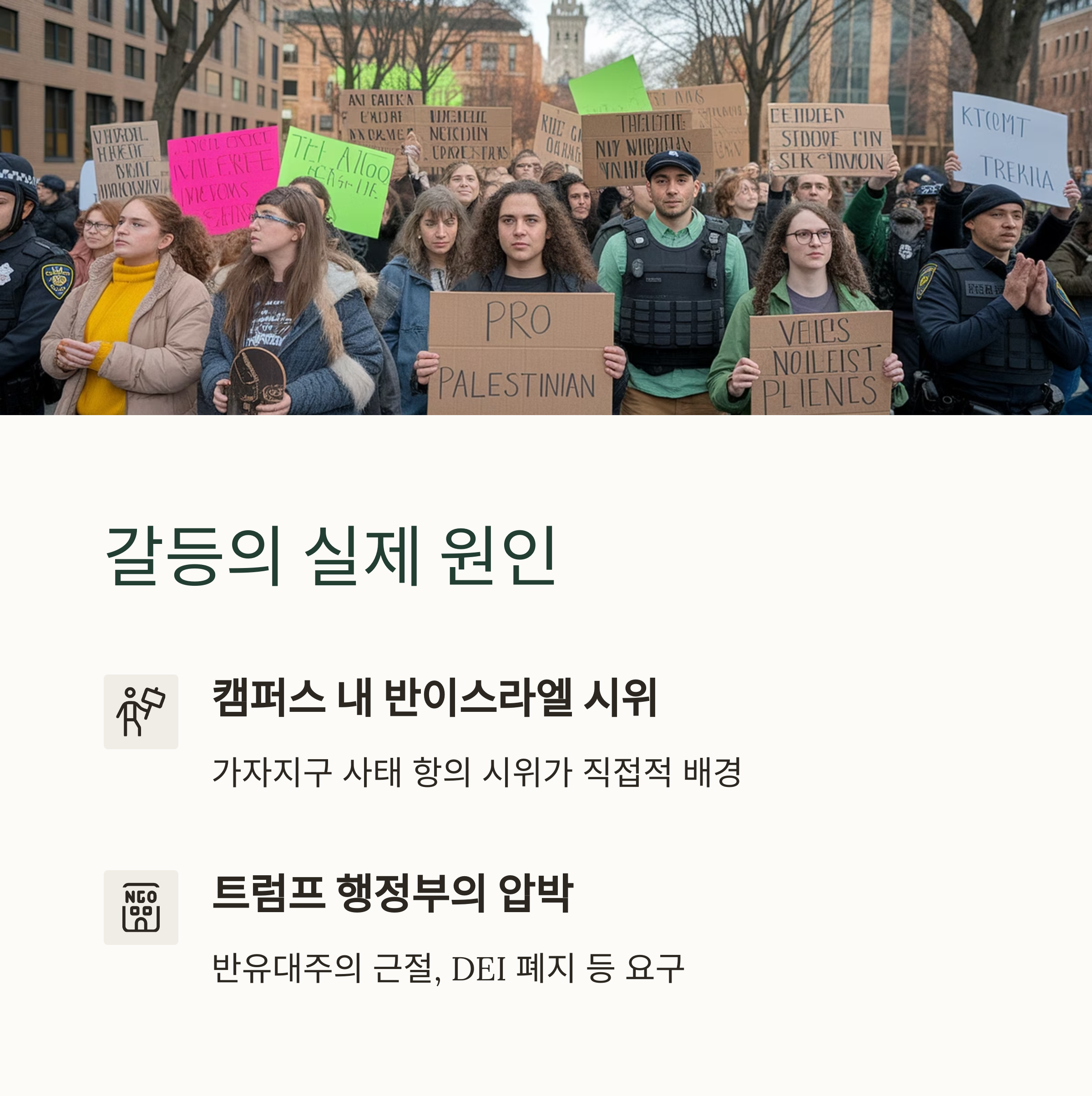 이번 충돌은 학문 자유, 이민정책, 정치 이념, 이 세 가지가 맞물린 상징적인 사건입니다.