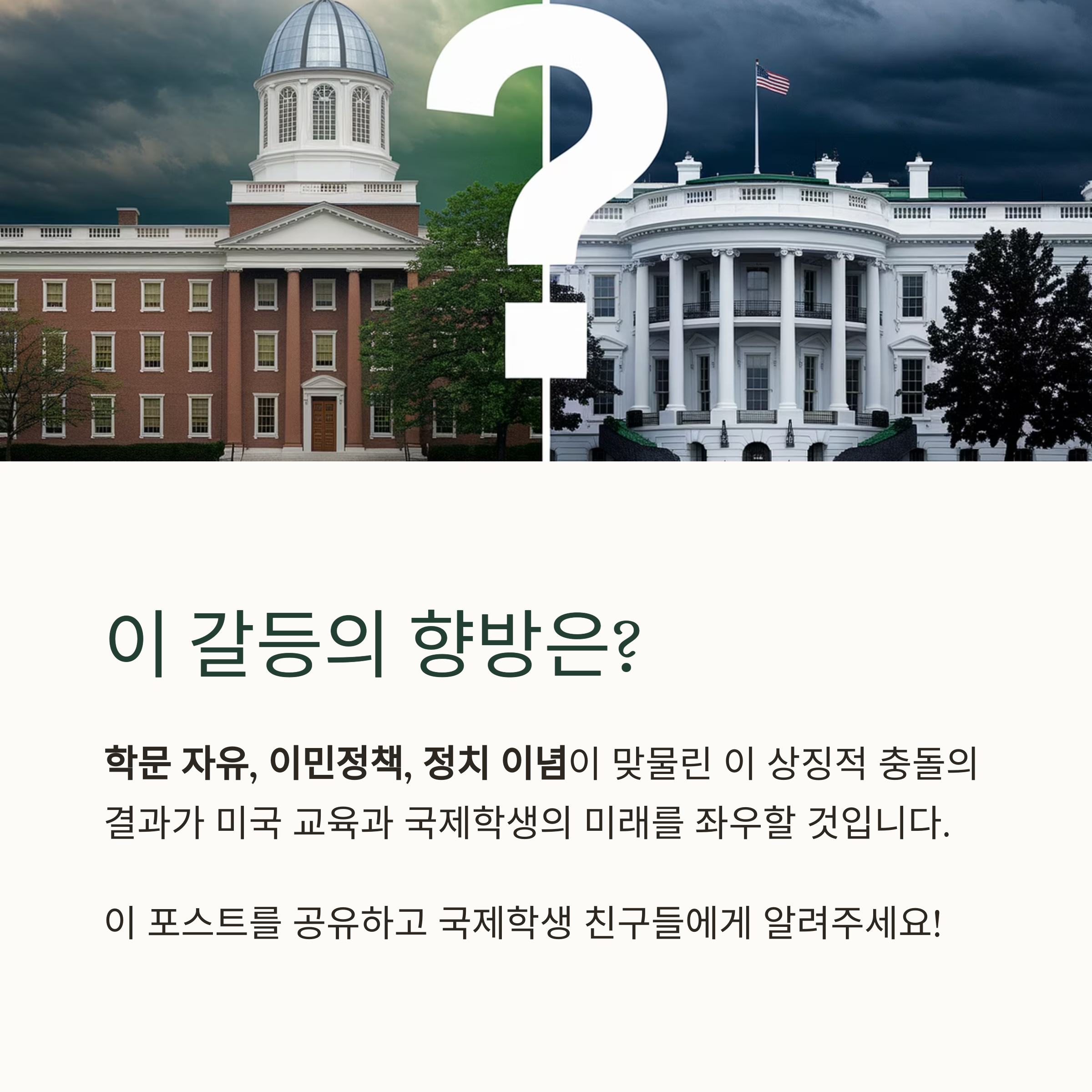 이번 충돌은 학문 자유, 이민정책, 정치 이념, 이 세 가지가 맞물린 상징적인 사건입니다.