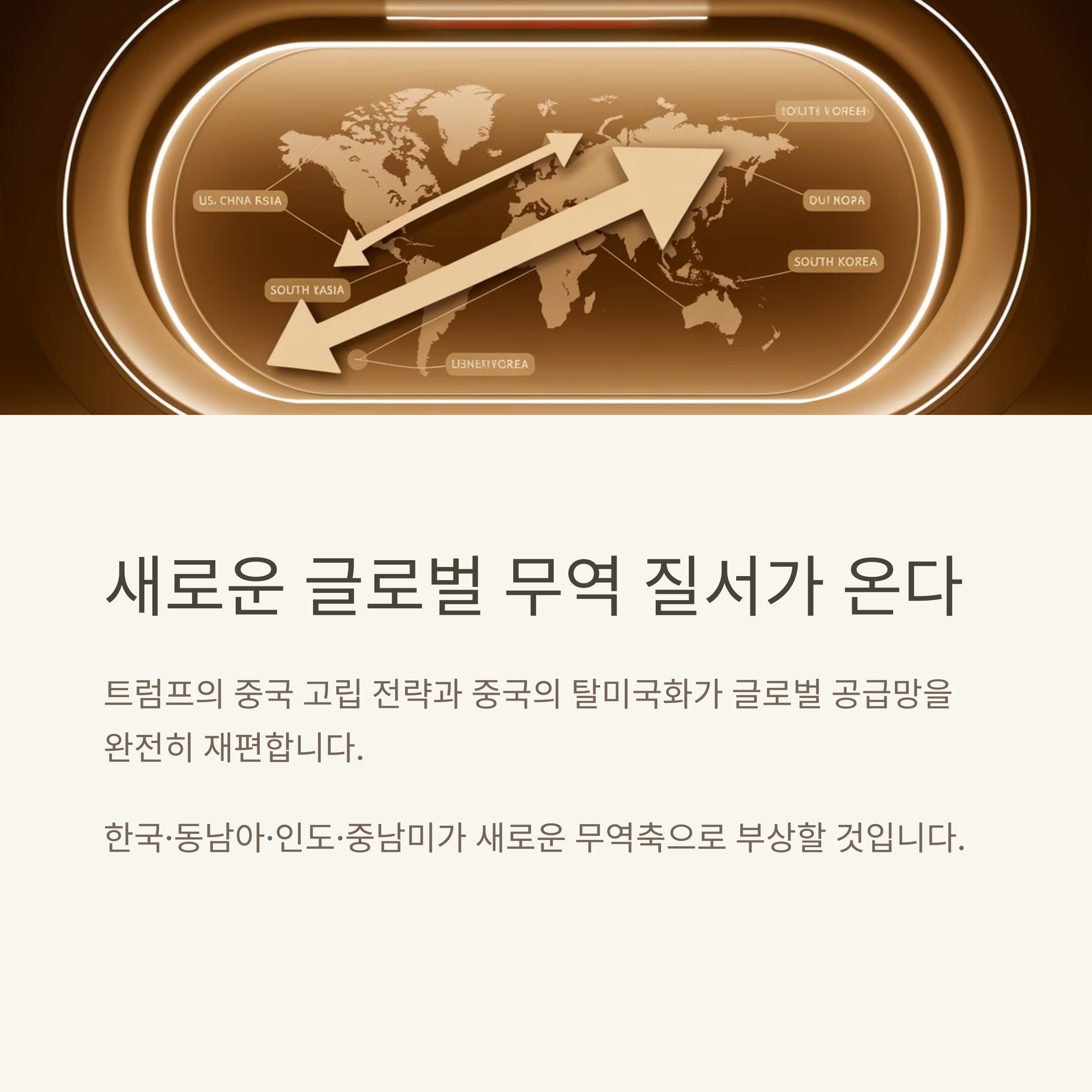 이번 무역전쟁은 단순히 과거의 반복이 아니라, 훨씬 더 구조적이고 장기적인 패권경쟁으로 진화하고 있다는 점에서 주목할 필요가 있습니다.
