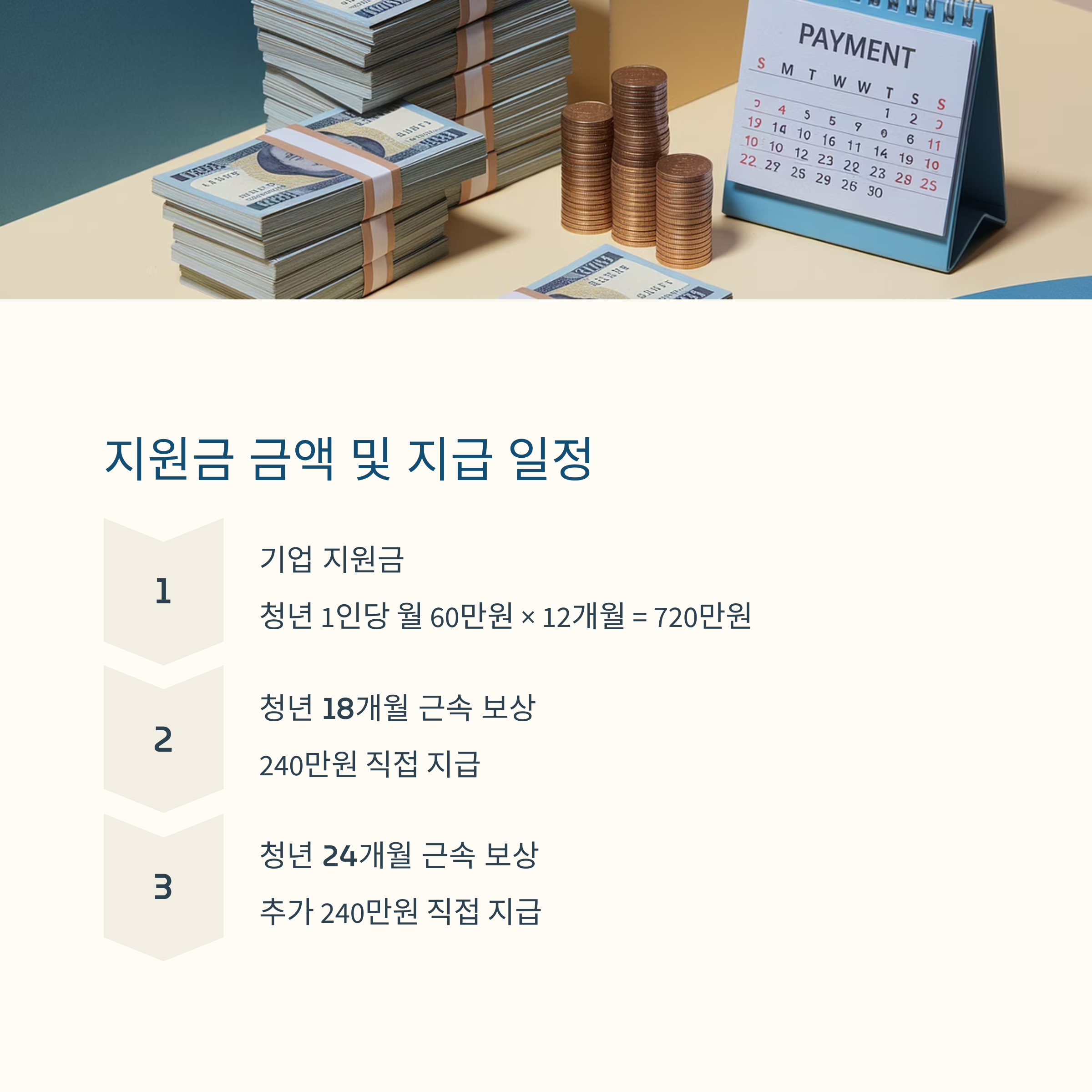 이 금액은 18개월차에 240만원, 24개월차에 다시 240만원이 지원됩니다.