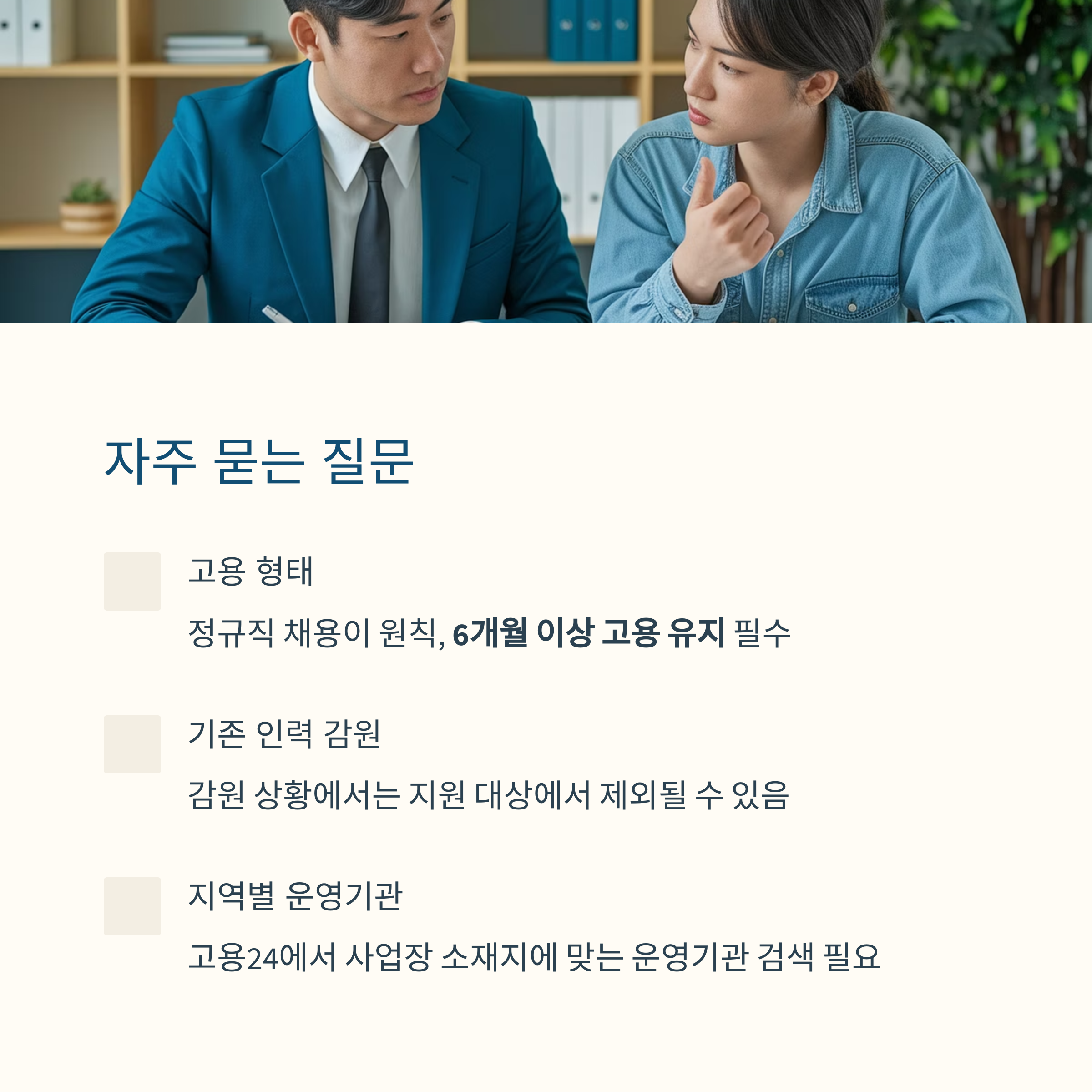 정규직 채용이 원칙이며 6개월 이상 고용 유지가 가능한 형태여야 합니다.