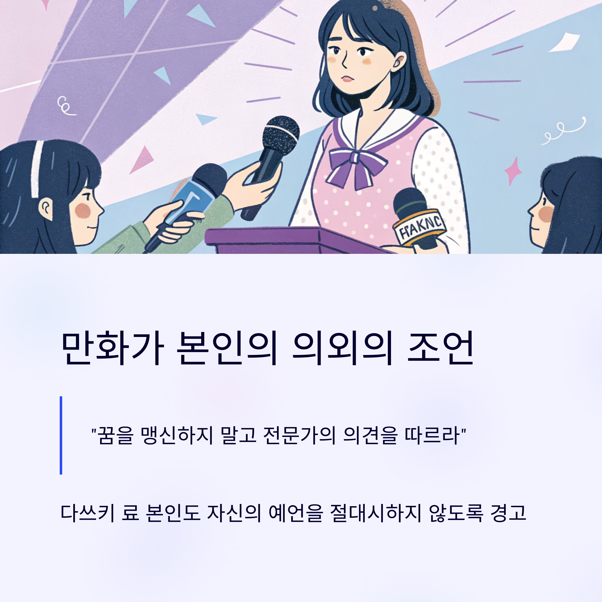 그리고 다쓰키 료 본인조차도 “꿈을 맹신하지 말고 전문가의 의견을 따르라”고 조언하고 있습니다.