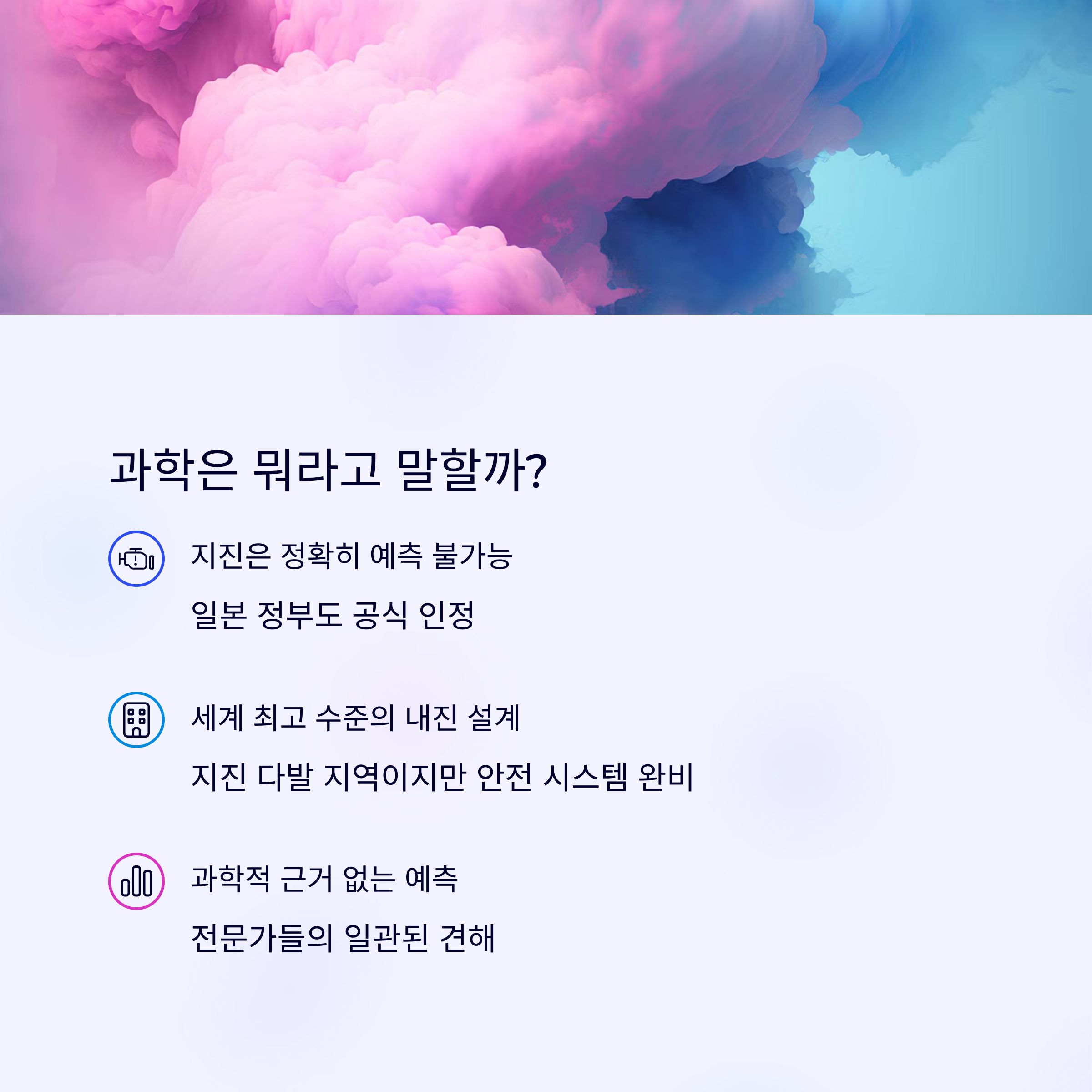 하지만 지진 전문가들은 일관되게 말합니다. “지진은 정확히 예측할 수 없다.” 일본 정부조차도 공식적으로 “과학 기술로는 아직 지진 발생 시점을 예측할 수 없다”고 밝힌 바 있습니다.
